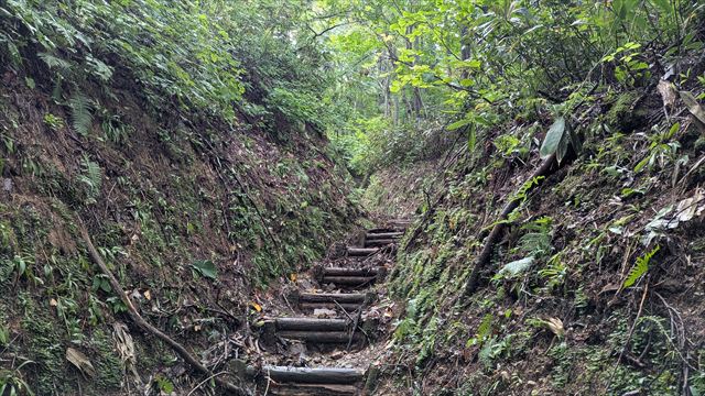 予想通り登山道は滑りやすくてじめじめしていたがなんとか山頂到着。