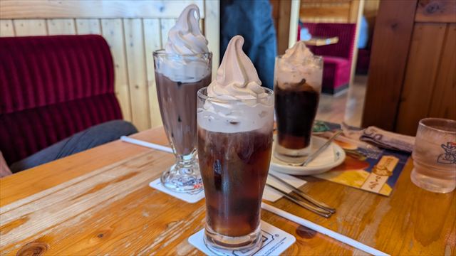 14:13 左からアイスココア(四男)、クリームコーヒー(僕)、ジェリコ(真理子)