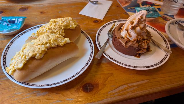 14:17 手作りたまごドッグ(僕)、お月見クロネージュキャラメルマロン(真理子)